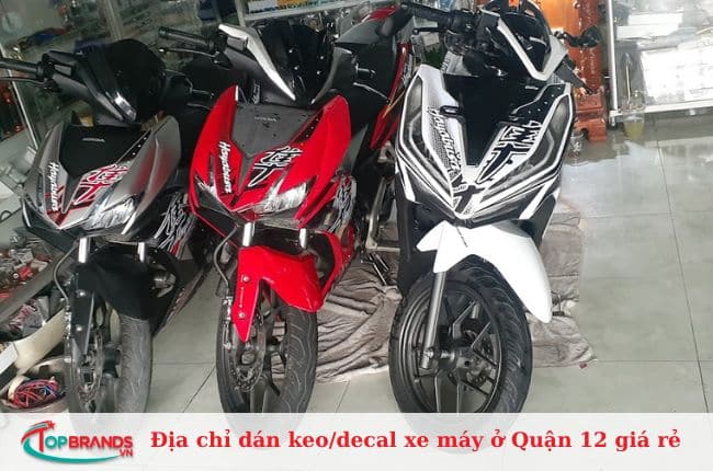 Bạn đang tìm địa chỉ dán keo, decal xe máy tại Quận 12 với mức giá hợp lý và dịch vụ chất lượng? Đây chính là cách giúp bảo vệ lớp sơn, hạn chế trầy xước và làm mới phong cách cho chiếc xe yêu quý của bạn. Để giúp bạn dễ dàng hơn trong việc lựa chọn Topbrands đã tổng hợp địa chỉ dán keo/decal xe máy ở Quận 12 đẹp, rẻ, uy tín. Danh sách này không chỉ mang đến những cửa hàng chuyên nghiệp mà còn gợi ý nhiều mẫu decal độc đáo để bạn tham khảo và lựa chọn.
