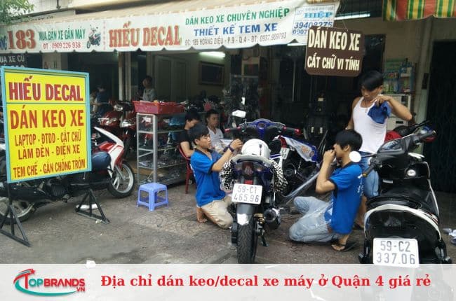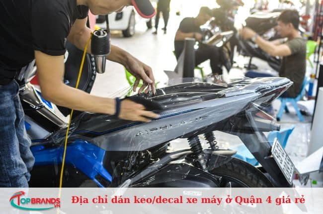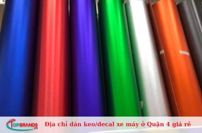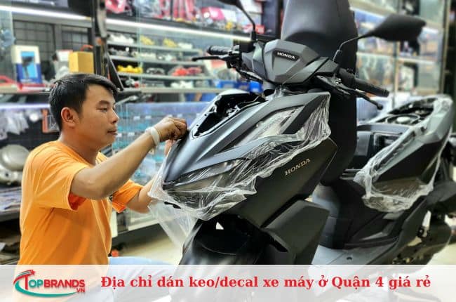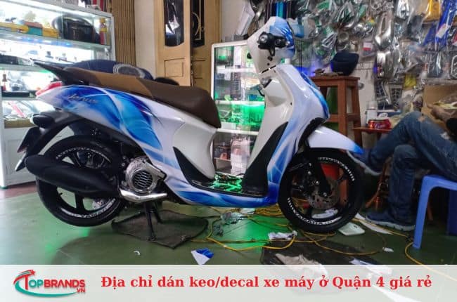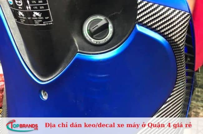 Với niềm đam mê cá nhân hóa, ngày càng nhiều chủ xe máy tìm kiếm những địa chỉ uy tín để dán keo hoặc decal cho chiếc xe yêu quý của mình. Để mang đến trải nghiệm tốt nhất, Topbrands giới thiệu danh dách địa chỉ dán keo/decal xe máy ở Quận 4 đẹp, chất lượng và uy tín, nơi bạn có thể lựa chọn những chất liệu bền bỉ, thiết kế ấn tượng. Những cửa hàng này sẽ giúp chiếc xe của bạn trở nên độc đáo và nổi bật trên đường phố Quận 4, vừa bảo vệ lớp sơn vừa thể hiện phong cách riêng.