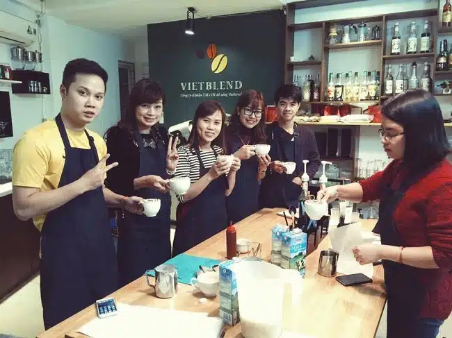 Các giáo viên của trường có nhiều kinh nghiệm sẽ giúp cho học viên có được kiến thức tổng quát về nghệ thuật Latte Art các dòng Espresso nóng/lạnh, Barista, cách sử dụng máy pha cafe, cách pha chế nhiều loại thức uống hiện đại như Mojito Ice, Smoothie, Blended,… Từ đó bạn có thể tiếp thu kiến thức nhanh chóng để trở thành một barista chuyên nghiệp