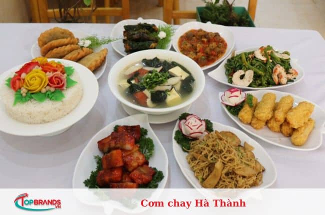 Hà Thành là công ty chuyên sản xuất, kinh doanh thực phẩm thuần chay, hoạt động trong lĩnh vực nhà hàng chay, chuyên nhận tiệc, tiệc chay và suất ăn chay văn phòng được nhiều người yêu thích vì chất lượng món ăn , giá cả. và chất lượng. Phong cách phục vụ ở đây nhanh chóng, gọn gàng và chu đáo. Cơm chay Hà Thành hiện đang nhận đặt món cúng, món chay từ 700.000đ với tối thiểu 9 món tươi ngon, được trang trí và bày đầy đĩa đều đặn, đẹp mắt.