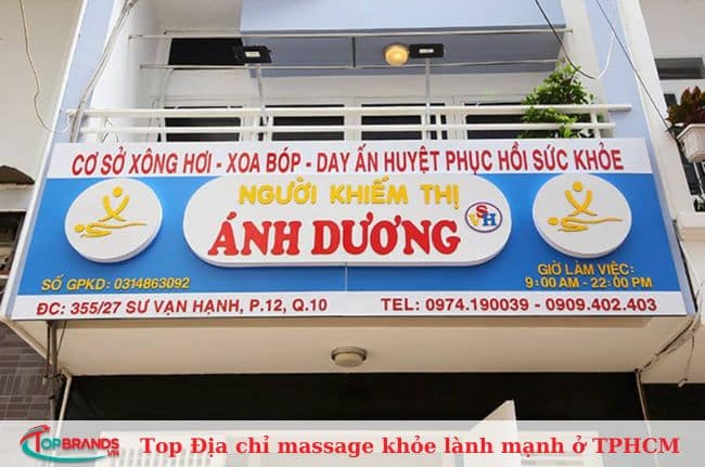Thêm một địa chỉ massage khỏe TPHCM có phần hơi độc lạ một tý mà bạn nên trải nghiệm đó chỉnh là Massage khiếm thị Ánh Dương. Đúng như cái tên gọi, dịch vụ mát-xa tại đây được cung cấp bởi những nhân viên khiếm thị. Nhưng tay nghề của họ được đánh giá là rất cao nên khách cứ yên tâm đến chăm sóc sức khỏe, sắc đẹp… tại đây nhé.