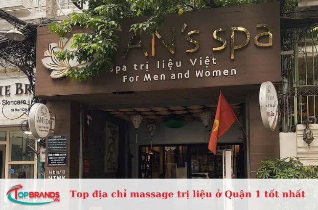 AN’s Spa là một trong những địa chỉ massage trị liệu hàng đầu ở Quận 1, với sự đồng hành từ chủ tịch sáng lập mô hình Spa Việt – Lương y Phan Cao Bình. Đến với AN’s Spa, khách hàng sẽ được trải nghiệm những dịch vụ chăm sóc sức khỏe tuyệt vời, kết hợp với massage ấn huyệt và y học cổ truyền. Với sự kỳ công và am hiểu của các chuyên gia có hơn 25 năm kinh nghiệm, spa mang đến những liệu pháp massage trị liệu cho từng vùng cơ thể cụ thể và massage toàn thân chất lượng.