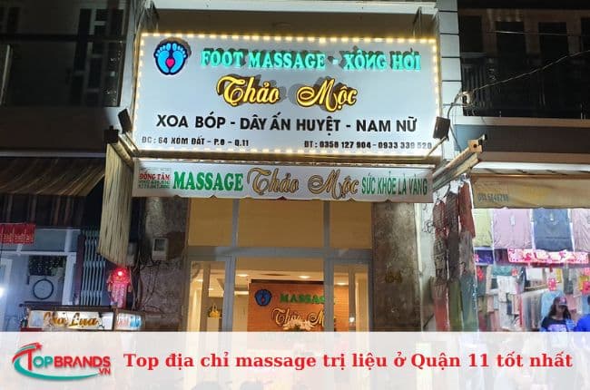 Nếu bạn tìm kiếm địa chỉ massage trị liệu chất lượng ở Quận 11 thì hay thử trải nghiệm Massage Thảo Mộc nằm trên đường Xóm Đất, Quận 11, nằm ngay cạnh những tiệm tạp hoá, làm tóc. Với không gian thoải mãi, kết hợp với tinh dầu sả và bạc hà, massage Thảo Mộc sẽ mang đến cho bạn một trải nghiệm thư thái, giải toả mọi áp lực.