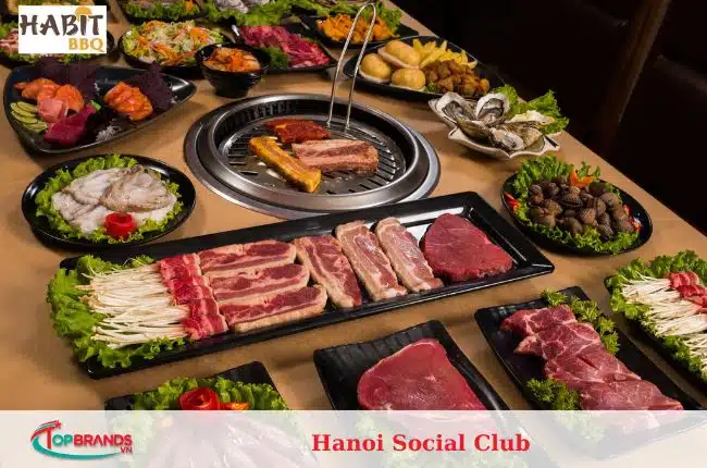 Thực đơn của Hanoi Social Club rất đa dạng từ khắp nơi trên thế giới, với nhiều loại đồ uống từ cà phê đến cocktail, ngay cả Trung Đông cũng không ngoại lệ. Bên cạnh đó, bánh mì kẹp thịt cũng là một trong những món ăn bán chay được ưa chuộng nhất.