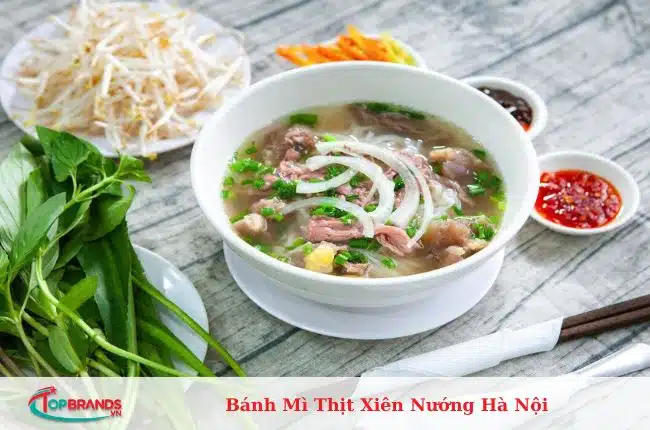 Bánh Mì Thịt Xiên Nướng Hà Nội chuyên bán bánh mì xiên thịt nướng nhưng quán còn bán cả món phở Hà Nội truyền thống và được nhiều thực khách ưa chuộng. Đến với nhà hàng này, thực khách sẽ được thưởng thức những bát phở nóng hổi khó cưỡng. Hương vị truyền thống của phở được truyền từ đời này sang đời khác vẫn giữ được sức hấp dẫn. Nước dùng được nấu từ xương bò và tủy bò được nêm gia vị vừa ăn. Sợi phở mềm, thịt bò tái mềm ngọt cùng chút tiêu, dấm, tỏi và tương ớt mang đến hương vị đậm đà, hấp dẫn.