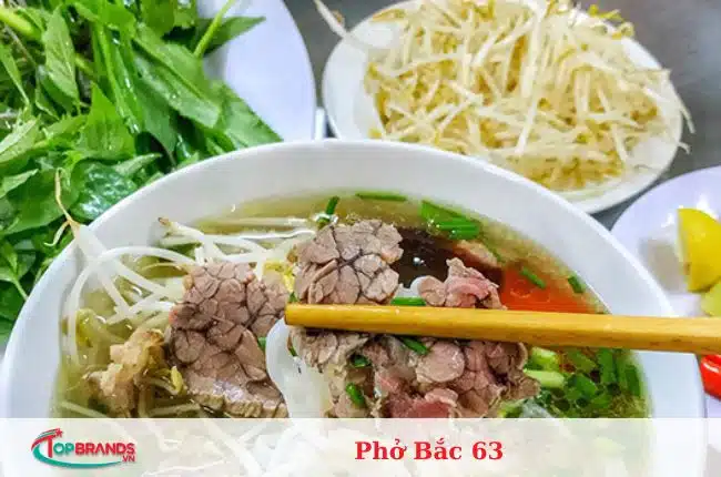 Phở Bắc 63 là điểm đến quen thuộc của nhiều người muốn thưởng thức tô phở Hà Nội đúng chất. Là một trong những địa chỉ quán phở Hà Nội ở Đà Nẵng lâu đời nhất, Phở Bắc 63 quyến rũ thực khách bởi nước dùng được nấu bí mật. Công thức gia truyền, không bột ngọt nhưng vẫn đậm đà hương vị. Thịt bò của nhà hàng được lựa chọn từ thịt bò tươi và được thái miếng ngay khi khách gọi để giữ được hương vị thơm ngon nhất.