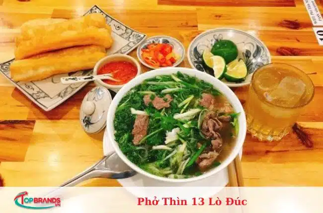 Một món phở thoáng đãng, một không gian quen thuộc và đậm chất Hà Nội xưa. Chắc chắn bạn sẽ ấn tượng bởi món phở ở đây mang hương vị miền Bắc, nước dùng trong vắt, không béo, lại được nấu từ xương, gân và thịt bò nên có hương vị không thể nhầm lẫn. Ngoài phở, Phở Thìn 13 Lò Đúc còn phục vụ món Lẩu bò chua cay thơm ngon, rất thích hợp cho gia đình và nhóm đông người đến dùng bữa.