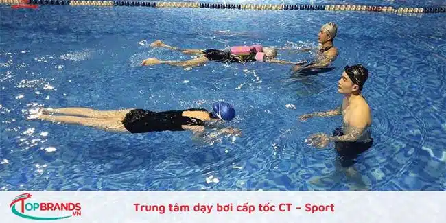 Trung tâm dạy bơi cấp tốc CT – Sport cũng là địa chỉ uy tín dạy bơi cho mọi lứa tuổi, đáng tin cậy và được nhiều người lựa chọn. Mỗi lớp chỉ có tối đa 5 học viên. Huấn luyện viên sẽ liên tục giám sát, theo dõi và hỗ trợ học viên trong quá trình tập luyện trên cạn và dưới nước. Đơn vị cam kết đảm bảo tất cả học viên sẽ thành thạo bơi lội sau khi hoàn thành khóa học tại CT – Sport.