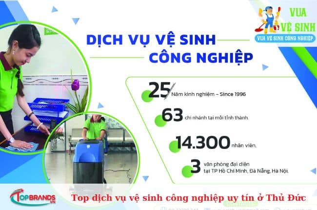 Ngày nay, vấn đề vệ sinh môi trường sống và làm việc đang được nhiều chủ doanh nghiệp, công ty quan tâm. Bởi việc làm này không chỉ đảm bảo vệ mặt sức khỏe mà còn tác động đến năng suất lao động. Vì vậy, các dịch vụ vệ sinh công nghiệp ở Thủ Đức xuất hiện ngày một nhiều để đáp ứng nhu cầu của khách hàng. Để không làm mất nhiều thời gian tìm kiếm của người đọc, hôm nay, Topbrands sẽ giới thiệu đến bạn danh sách dịch vụ vệ sinh công nghiệp uy tín, giá rẻ ở Thủ Đức mà bạn có thể tin tưởng lựa chọn.