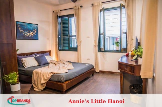 Hiện tại Annie’s Little Hà Nội cho thuê 3 loại phòng. Đặc biệt, hạng phòng King còn có ban công giúp du khách chiêm ngưỡng vẻ đẹp của đường phố Hà Nội. Diện tích mỗi phòng hơn 18m2, có 1 giường lớn có thể ở được 2 người. Ngoài nội thất tiện nghi, khu vực bếp nhỏ và minibar cũng được gia đình chủ nhà cung cấp giúp bạn có không gian riêng tư hơn.