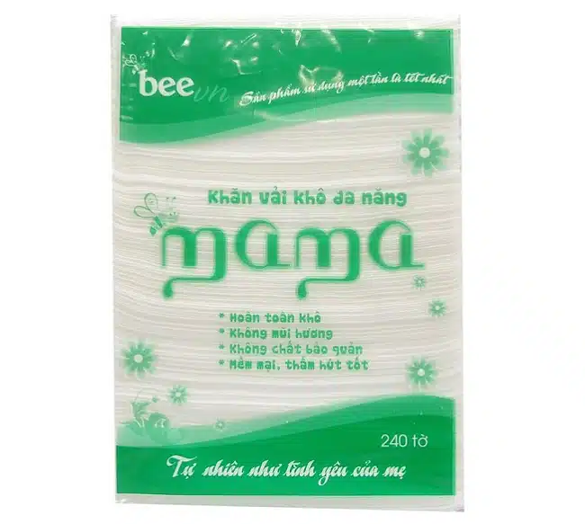 Khăn vải khô đa năng Mama hẳn là cái tên khá quen thuộc của đông đảo người tiêu dùng Việt. Đây là sản phẩm do công ty cổ phần thương mại Bee Việt Nam sản xuất dựa trên dây chuyền hiện đại nên vô cùng đảm bảo chất lượng từ khâu đầu vào đến đầu ra trong quá trình sản xuất. Với rất nhiều ưu điểm vượt bậc sản phẩm này chính là trợ thủ của mẹ trong quá trình chăm sóc bé yêu.