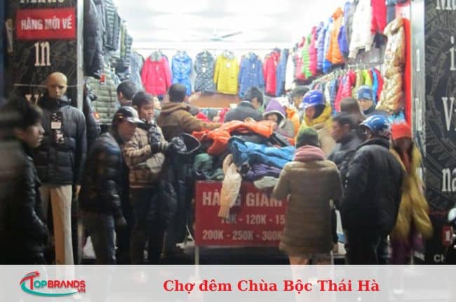 Nói đến Chợ đêm Chùa Bộc Thái Hà, không một sinh viên nào không biết đến khu mua sắm chỉ mở cửa vào buổi tối dọc phố Chùa Bộc. Bên cạnh những cửa hàng quần áo, túi xách hoạt động cả ngày, bạn có thể bắt gặp những gian hàng buôn bán nhỏ bán nhiều quần áo, giày dép giá rẻ, rất phù hợp với túi tiền sinh viên.