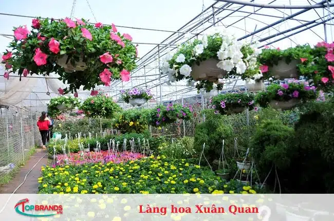 Làng hoa Xuân Quan nằm trên địa bàn xã Xuân Quan – Văn Giang – Hưng Yên, tổng diện tích đất canh tác gần 200 ha, toàn bộ nằm ngoài đê. Ở Xuân Quan, các loại hoa, cây cảnh chủ yếu được trồng: Hoa truyền thống (hoa hồng, hoa cúc…), hoa cao cấp (hoa huệ, địa lan…), hoa giỏ treo (dải dạ yên thảo, hoa cát tường…). ..), cây thảm và nhiều loại cây xây dựng (Tiên đào, lộc vừng…). Vì cách thành phố Hà Nội gần 20 km và khá gần làng gốm Bát Tràng nên bạn có thể đi xe máy theo đường đê biển Long Biên, bắt xe buýt 47 rồi đi taxi-xe máy một đoạn là đến nơi.