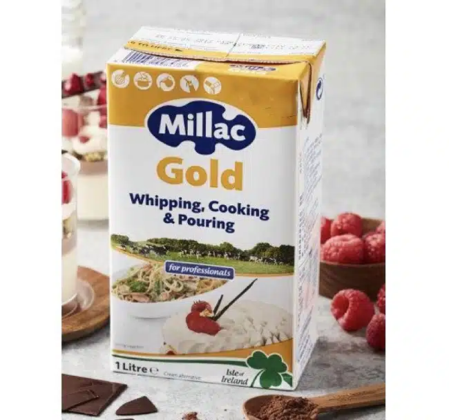 Khác với các loại kem whipping thông thường khác, Kem whipping Millac Gold hộp 1L là sự pha trộn của chất béo thực vật, bơ sữa và chất béo sữa. Kem whipping millac gold có vị ngọt nhẹ, hương thơm nhè nhẹ, và có giá trị dinh dưỡng cao, rất tốt cho sức khỏe, đặc biệt an toàn cho người sử dụng khi được sản xuất từ công nghệ tiên tiến Anh Quốc.