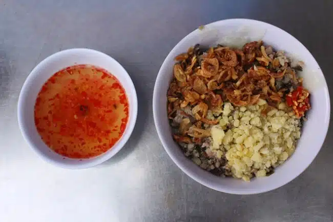 Tại đây có 2 loại: bánh đúc nóng và nguội cho các bạn chọn. Bánh đúc nóng thì có thịt băm, đậu phụng và thịt bằm ăn kèm cùng nước mắm thơm ngon. Còn bánh đúc nguội cũng na ná bánh nóng nhưng bánh dẻo, chắc bột và ăn giòn giòn rất hấp dẫn.