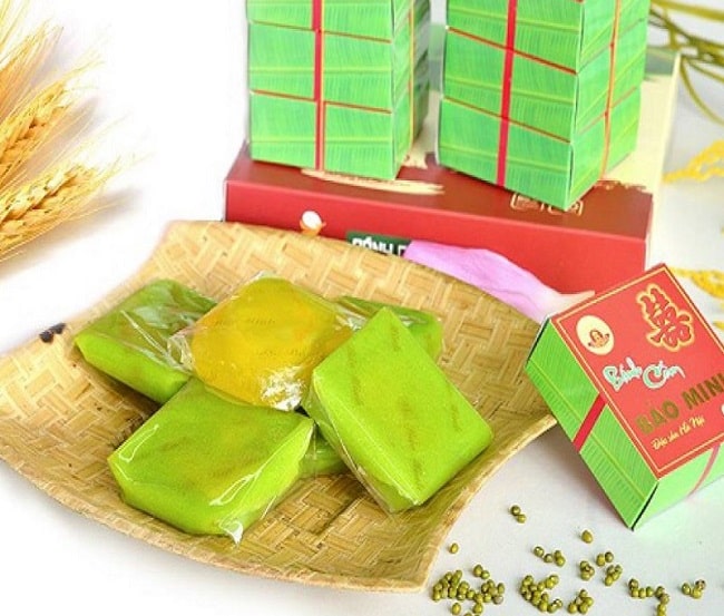 Bàn về đặc sản Hà Nội “được lòng” du khách nhất, không thể nào thiếu bánh cốm – nét ẩm thực tinh túy lâu đời của mảnh đất thủ đô. Đây là món ăn vặt Hà Nội nổi tiếng bởi vị ngọt thanh dễ ăn và hương thơm đặc biệt hấp dẫn. Vỏ bánh được làm từ nếp cái hoa vàng màu xanh lá hút mắt, ngọt và dẻo, bao lấy phần nhân chế biến từ sầu riêng hoặc đậu xanh.
