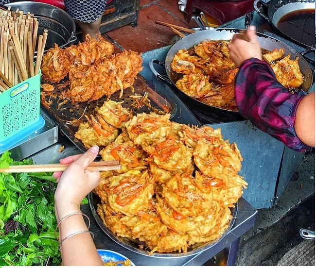 Dù chỉ là một món ăn vặt vỉa hè chiên rán, nhưng món bánh tôm này lại hấp dẫn nhiều thực khách, đặc biệt là người thích khám phá món ngon Hà Nội và các bạn trẻ nơi đây.