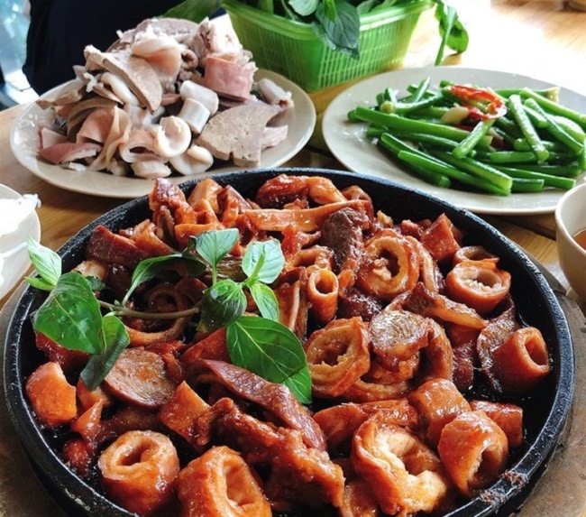 Đặt chân đến Hà Nội mà chưa thưởng thức đặc sản lòng rán thì quả thật là tổn thất lớn đối với thực thần chính hiệu. Miếng lòng sạch được rán chín xém cạnh, bên ngoài giòn tan bên trong mềm mại, ăn kèm với rau thơm, bún tươi, hòa quyện vị mắm tôm chua cay thì phải nói là “không thể chê được”.