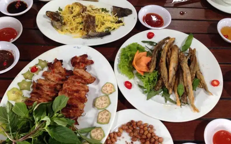 Ẩm thực sông Mekong Quán ở Thủ Đức có lẽ không còn xa lạ gì với người dân nơi đây. Đây là nhà hàng sở hữu không gian thoáng mát với hướng view sông trong lành tạo cảm giác thư thái, thoải mái cho thực khách khi dùng bữa tại đây. Đặc biệt, tại đây có món ếch cháy riềng và cá chép om dưa siêu ngon nằm trong top món bán chạy của quán. Giá cả cũng rất phải chăng nữa. Vì vậy, hãy cùng bạn bè và người thân đến đây để thưởng thức những món ngon đặc trưng của Việt Nam nhé.