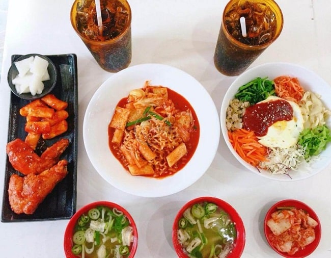 Đặc biệt không thể bỏ qua món tokbokki hay món mì gói Hàn Quốc. Bên cạnh đó, nhà hàng Hàn Quốc này còn phục vụ những món hấp dẫn như: ba rọi heo nướng cay, gà rán, thịt bò nướng. Một điều thú vị của quán là có quầy tự phục vụ kim chi và món súp miễn phí để bạn dùng với những món ăn chính.