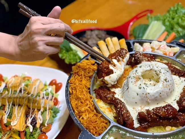Nơi đây rất thích hợp để bạn tổ chức những buổi họp mặt, quây quần bên gia đình. Thực đơn của quán toàn những món ăn hấp dẫn giới trẻ như: gà phô mai sốt kem, sườn cây phô mai, cơm trộn Hàn Quốc, lẩu kim chi…