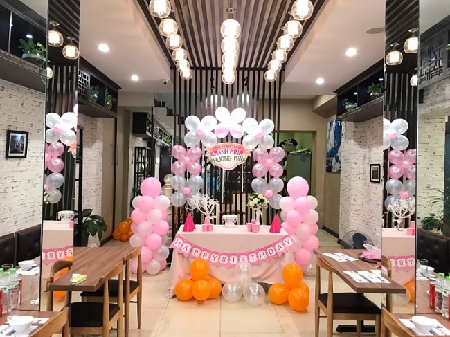 - Trang trí linh hoạt và sáng tạo: Nhà hàng cung cấp các gói trang trí theo chủ đề, kết hợp ánh sáng, bóng bay và backdrop hiện đại, tạo không gian ấn tượng và đáng nhớ.