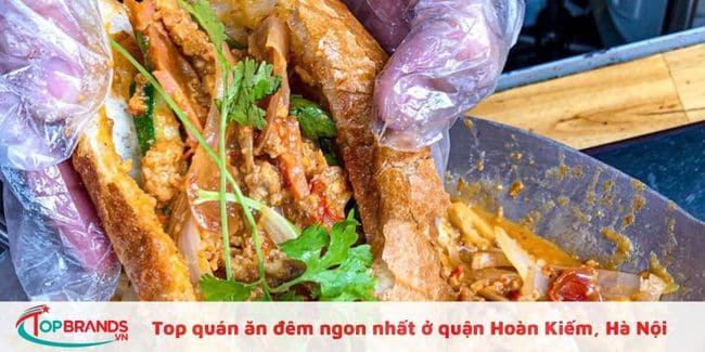 Nhân bánh được chủ quán tự tay lựa chọn và chế biến tỉ mỉ, tù miếng pate ngậy thơm tự làm cho đến những ổ bánh mì giòn rụm. Một ổ bánh có giá 20.000 đồng, đa số ai đến đây cũng đều gọi nhân thập cẩm. Khách ngồi nhâm nhi ổ bánh mì ngay trên vỉa hè, vừa ăn bánh vừa hàn huyên và hít thở bầu không khí lành lạnh của đêm khuya, tờ mờ sáng sớm.