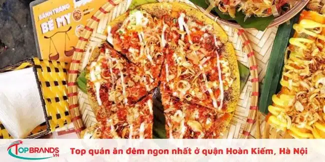 Bánh Tráng Bé My là một trong những hàng bánh tráng nướng ngon đúng điệu bánh tráng nướng Đà Lạt ở Hà Nội mà bạn nhất định phải thử. Những chiếc bánh tráng nướng tại đây rất giòn tan của phần bánh, thơm béo của trứng cùng vị tươi ngọt, đậm đà của mực, thịt bò và nước sốt. Món ăn vặt đêm khuya này sẽ khiến buổi đêm của bạn trở nên thú vị hơn rất nhiều đấy nhé!