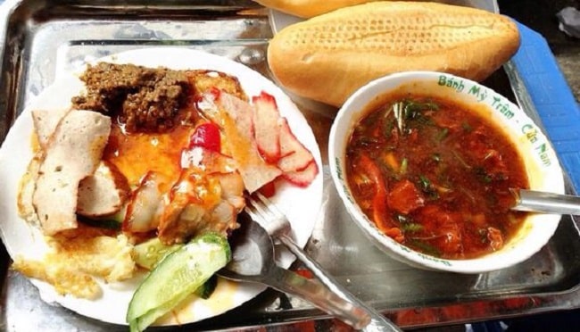 Nguyên liệu để làm nhân bao gồm hành tây, trứng, pate, xúc xích, chả, lạp xưởng, bò khô, bơ… được cho lần lượt vào một chiếc chảo để chế biến cùng nhau. Phần nhân này sau khi được xào chín sẽ kẹp chung vào trong từng chiếc bánh mì đã kèm sẵn rau và dưa chuột ăn kèm. Khi thưởng thức bánh mì dân tổ bạn có thể rắc một chút ớt vào phần hỗn hợp sền sệt bên trong để ăn ngon hơn.