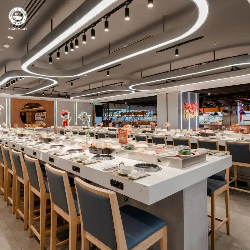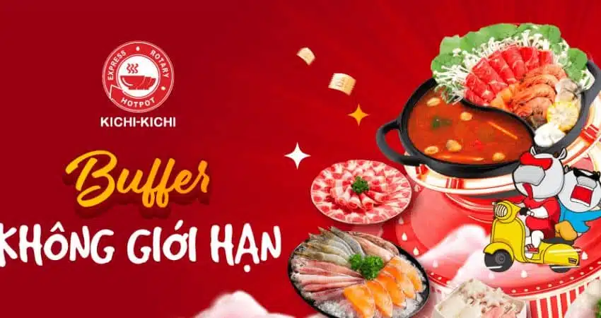 Kichi Kichi là chuỗi nhà hàng buffet lẩu băng chuyền nổi tiếng ở Việt Nam. Menu nhà hàng sở hữu các món ăn tươi ngon, đảm bảo hợp vệ sinh dưới hình thức băng chuyền chuyển động đến vị trí chỗ ngồi đã thu hút nhiều thực khách. Hơn nữa, không gian nhà hàng cũng rất hiện đại, sang trọng tạo cảm giác ăn uống ngon miệng hơn. Không thể quên đội ngũ nhân viên thân thiện, sẵn lòng phục vụ thực khách hết mình đảm bảo bạn sẽ cảm thấy hoàn toàn xứng đáng với số tiền bỏ ra.