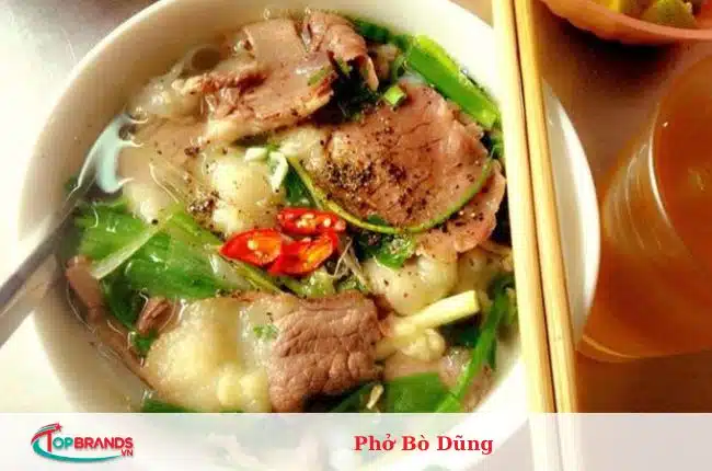 Một quán ăn trên đường Quang Nhân nổi tiếng mà chúng tôi mang đến tiếp theo cho bạn chính là Phở Bò Dũng. Đây là một quán phở gia tuyền đã hoạt động từ lâu nên bạn có thể hoàn toàn an tâm về thương hiệu. Phở tại đây có hương vị rất tuyệt vời, nước dùng rất thanh ngọt, sợi phở dai, thịt nhiều,.. Khách hàng có nhiều sự lựa chọn phù hợp với nhu cầu ăn như: phở tái, phở chín, phở bắp trần…