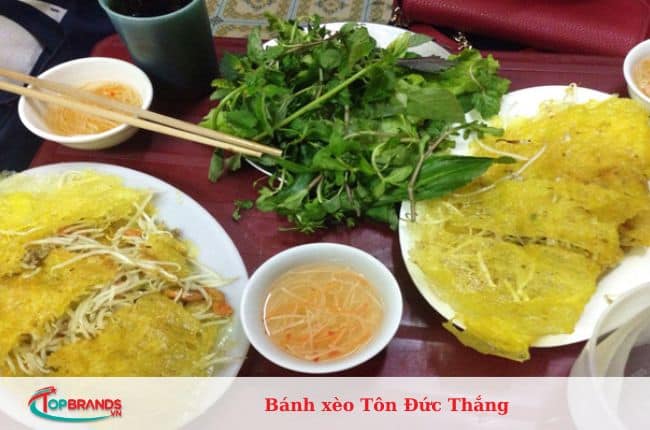 Một quán ăn trên đường Tôn Đức Thắng cũng có khoảng thời gian hoạt động lâu năm nhưng danh tiếng của quán vẫn bền vững đó chính là Bánh xèo Tôn Đức Thắng. Bánh xèo tại đây giòn, nóng hổi, bạn có thể lựa chọn trong nhiều loại nhân khác nhau: nhân tôm – thịt lợn, tôm – thịt bò, tôm – thịt gà hoặc thập cẩm, mỗi loại có một giá khác nhau. Nước chấm của quán cũng rất ngon, ăn kèm với các loại rau đúng là ngon khó cưỡng lại được.