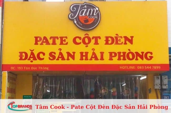 Tâm Cook – Pate Cột Đèn Đặc Sản Hải Phòng là một địa chỉ cung cấp pate có tiếng, đã hoạt động hơn 20 năm. Pate tại đây được làm từ 80% thịt lợn tươi sạch, cùng các nguyên liệu khác như: gan lợn, mỡ khổ, hành tím, tỏi,… cùng công thức chế biến riêng đã tạo nên món pate trứ danh. Các bạn có thể đến đây để mua pate về thưởng thức.