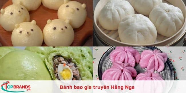 Bánh bao Hằng Nga có những chiếc bánh bao nhỏ xinh với lớp vỏ dai, xốp, mịn và phần nhân đầy đặn. Có nhiều loại nhân cho bạn lựa chọn như bánh bao kim sa, bánh bao xá xíu, bánh bao trứng muối, bánh bao chay, đặc biệt là món best seller là bánh bao truyền thống mang hương vị đặc trưng “cộp mác” của địa chỉ bánh bao gia truyền Hằng Nga.