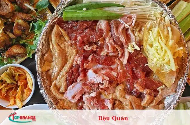 Bệu Quán là một quán bò nầm nướng ở Hà Nội rất bình dân với không gian quán ngồi ở vỉa hè tạo cảm giác gần gũi. Tuy chỉ là món ăn bình dân nhưng sẽ khó tìm được quán nào khác có hương vị tương tự như Bệu Quán. Món ăn được ướp gia vị rất vừa ăn, kèm với nước chấm rất đậm đà. Giá cả ở đây cũng khá rẻ nên nếu có dịp bạn hãy ghé qua thử một lần.