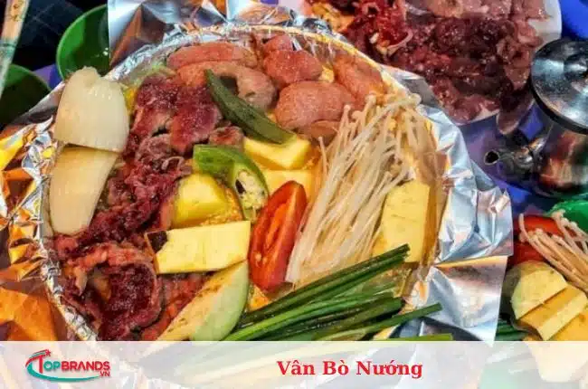 Vân Bò Nướng là quán ăn bình dân, có giá cả rất phù hợp với học sinh, sinh viên. Quán chủ yếu là các món về bò và nầm bò. Điểm đặc biệt là quán chỉ dùng bắp bò để phục vụ. Nầm bò ở đây được chế biến rất sạch sẽ, không bị hôi nên thực khách có thê yên tâm. Ngoài ra Vân Bò Nướng còn có các loại thức ăn đi kèm như: nộm xoài, khoai, củ đậu, bánh mì bơ mật ong hoặc bánh phồng tôm,..