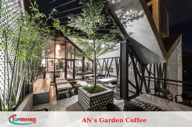AN’s Garden Coffee trông giống như một ngôi nhà kính với tông màu chủ đạo là nâu trầm. Quán có đến 3 tầng và sân thượng cực kì rộng rãi cho bạn thoải mái lựa chỗ ngồi đẹp. AN’s Garden cũng trang trí nhiều loại cây xanh tạo cảm giác thoải mái, mát mẻ. Menu đồ uống vô cùng đa dạng, có thể kể đến như: cà phê Việt Nam, cà phê Ý, nước ép, smoothies, các loại trà, kem, healthy drink, cocktail, rượu vang,… Ngoài ra còn có các món ăn như: salad, súp, burger, pasta, tráng miệng,…