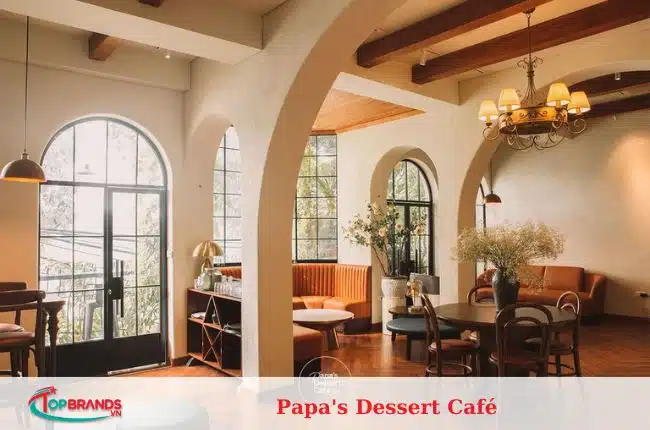 Có rất nhiều những quán cafe với phong cách rất “nghệ” ở xung quanh nhưng Papa’s Dessert Café vẫn nổi lên với lối trang trí rất trang nhã bằng tone màu trắng. Quán có không gian cả trong nhà và ngoài trời, thỉnh thoảng sẽ dựng một mô hình căn lều nhỏ để khách hàng “check in”. Nếu đến đây được thưởng thức những món ăn và thức uống cực ngon, cùng với không gian lộng lẫy đậm chất châu Âu thì dù giá có nhỉnh hơn một chút so với những quán khác chắc hẳn cũng rất đáng tiền có phải không nào?