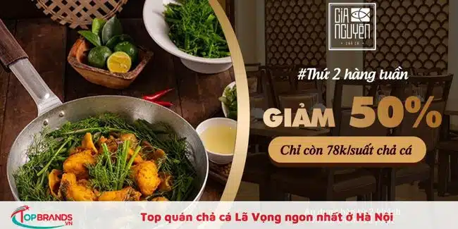Chả Cá Gia Nguyễn là cái tên tiếp theo nằm trong danh sách những quán chả cá Lã Vọng ngon ở Hà Nội mà chúng tôi sắp giới thiệu. Mở đầu bữa tiệc, bạn có thể gọi Chả cá lăng, lẩu cá măng, gỏi cá lăng tầm xuân, cá lăng nướng muối ớt,…Đặc biệt, món chả cá ở đây được làm từ cá lăng nhập trực tiếp từ Thái Bình, Phú Thọ,… nên cá lúc nào cũng tươi roi rói, ngọt thịt vô cùng. Cộng với kinh nghiệm tẩm ướp và rán cá của các đầu bếp tài ba tại nhà hàng đã giúp cho món ăn thêm dậy vị.