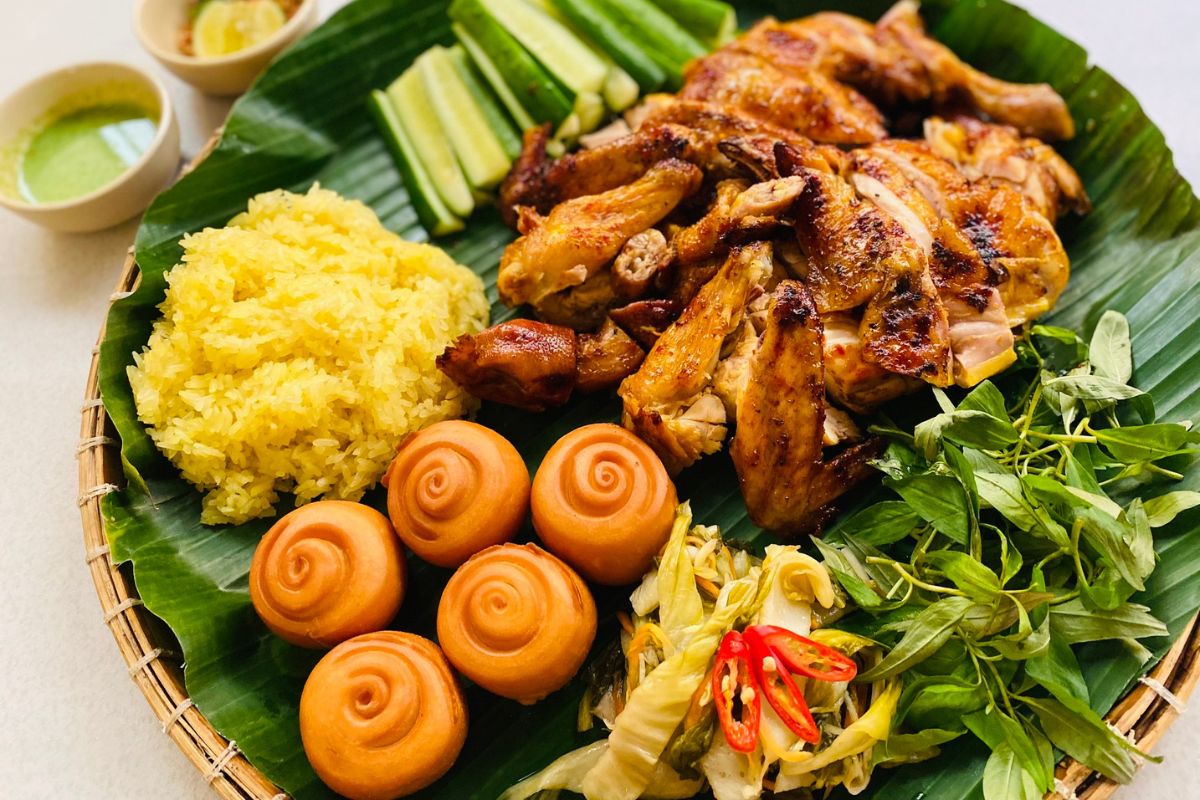 Phần gà nướng với nhiều món thích hợp cho 2 – 3 người ăn. | Nguồn: Vua Gà Nướng – 269 Kim Mã