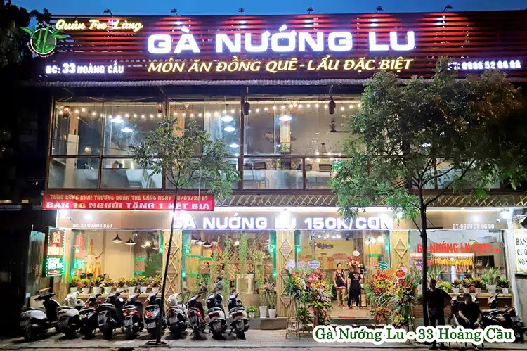 Quán Tre Làng – Gà Nướng Lu nằm tại số 33 Hoàng Cầu là cái tên tiếp theo nằm trong danh sách các quán gà nướng lu ngon và đông khách nhất ở Hà Nội. Do nằm ngay mặt đường nên rất dễ tìm. Không gian quán với 2 tầng lầu rộng rãi cùng phong cách thiết kế nội thất đẹp mắt giúp thực khách dùng bữa ngon miệng hơn.
