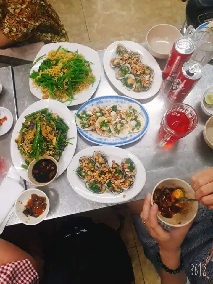 Món ngon nhất của quán đó là nghêu hấp xả. Những con nghêu to tròn lúc ẩn lúc hiện giữa lớp sa tế đổ đỏ, tô điểm thêm màu trắng xanh của xả với hương thơm “động lòng người”. Còn nước dùng ta nói ngọt thanh phải biết, cho con nghêu vào miệng rồi húp chút nước dùng là thấy ngất ngây.