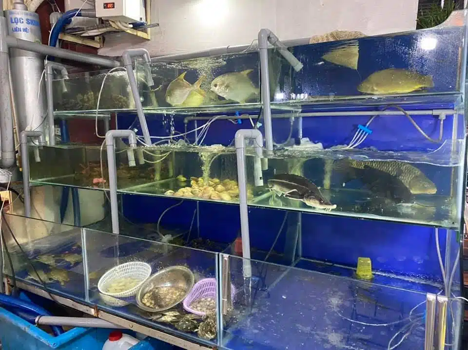 Vựa hải sản Trần Tính Quận 10 là cái tên tiếp theo không thể vắng mặt trong những quán hải sản. Mặc dù quán có diện tích khá nhỏ nhưng bù lại không gian toàn là bể cá, bể cua,… tươi rói mà còn được chế biến ngay tại chỗ. Bởi vậy rất đúng với câu nói “tuy nhỏ nhưng có võ” vì cửa hàng có đầy đủ các mặt hàng hải sản tươi như tôm càng xanh, ốc, hàu, cua, ghẹ,…Như đã chia sẻ, hải sản sẽ được chế biến tại chỗ nếu bạn muốn thưởng thức trực tiếp tại quán. Còn trường hợp bạn không có thời gian đến quán thì muốn mua về hay đặt online cũng đều được nhé.