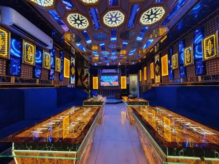 Đến đây, bạn sẽ ấn tượng với không gian được lấy cảm hứng từ nhiều nền văn hóa, thương hiệu thời trang, siêu xe được tái hiện một sống động. Toàn bộ phòng hát đều được đầu tư hệ thống ánh sáng, âm thanh rực rỡ mang đến một dịch vụ giải trí 5 sao hoàn hảo.