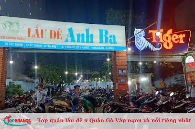 Lẩu dê Anh Ba là một quán lẩu dê giá rẻ khác mà bạn có thể tham khảo và đến thưởng thức. Quán sở hữu không gian ăn uống rộng rãi, bàn ghế được sắp xếp khoa học. Mặc dù thiết kế đơn giản, nhưng không gian quán vẫn mang đến sự ấm cúng và vẻ đẹp riêng. Nhân viên phục vụ nhanh nhẹn, tháo vát và rất vui tính. Với chất lượng phục vụ tuyệt vời như vậy, không có gì ngạc nhiên khi quán luôn đông đúc khách.