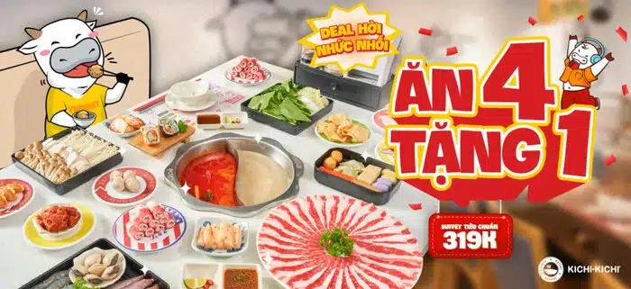Lẩu Kichi Kichi chú trọng đến việc lựa chọn những nguyên liệu thơm ngon, chất lượng và có gần 100 món khác nhau. Nhiều món ngon mà bạn nên thử khi đến đây như cá hồi nguyên con, thịt bò nhập khẩu Mỹ và không thể thiếu vắng món đặc trưng của Nhật Bản đó chính là sushi.