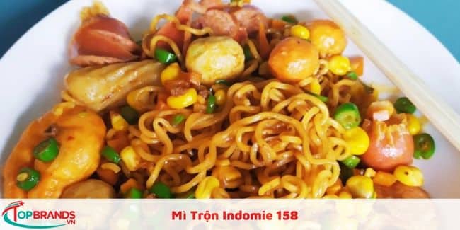 Một địa chỉ khác ở quận Đống Đa là Mì Trộn Indomie 158. Đây là tiệm mỳ trộn Indomie cũng cung cấp nhiều loại topping và há cảo tôm. Ngoài ra, quán còn phục vụ thêm viên hải sản sốt mayonnaise, các loại viên rán riêng và đặc biệt là bánh gà, đậu hũ phô mai mua riêng vô cùng hấp dẫn. Bạn cũng có thể mua indomie kèm theo set đồ chiên, thêm ly trà chanh con quả là xuất sắc. Món ngon best seller ở đây không thể không nhắc đến chính là mì trộn chua ngọt. Một đĩa mì đầy ắp topping với những sợi mì dai dai giòn giòn, chả heo, bò khô, thịt gà thơm ngon hay gan chiên giòn.
