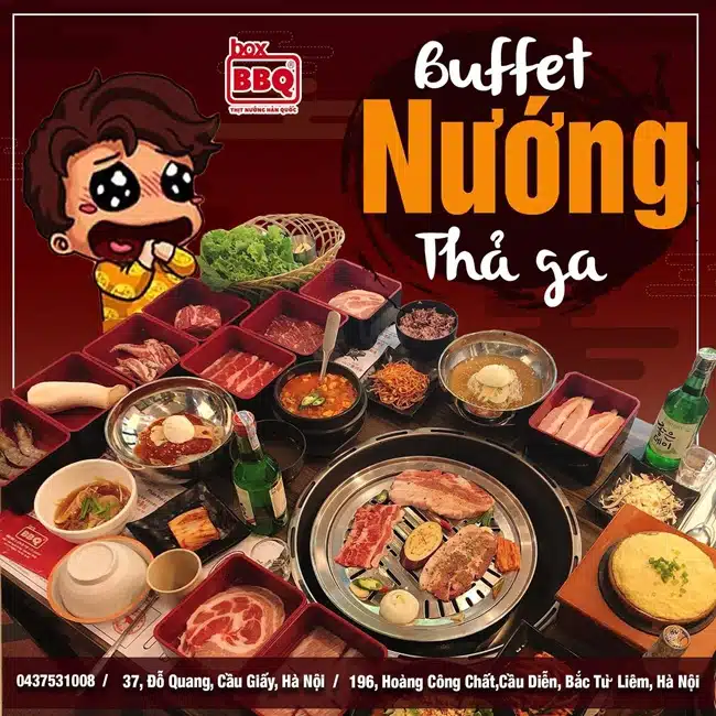 Box BBQ là cái tên không thể thiếu khi nhắc đến top các nhà hàng thịt nướng ngon nhất ở Hà Nội. Đến đây, bạn sẽ được thưởng thức các món nướng hảo hạng được tẩm ướp đúng chuẩn Hàn Quốc trong một không gian sang trọng, tinh tế, ấm cúng. Menu quán đa dạng với hơn 30 món tha hồ cho bạn tùy ý thưởng thức mà không lo về giá. Món ăn ngon, không gian hiện đại, nhân viên phục vụ chu đáo, chuyên nghiệp thì quả thực bữa tiệc BBQ của bạn hoàn toàn xứng đáng với “ngân sách” rồi đúng không nào?