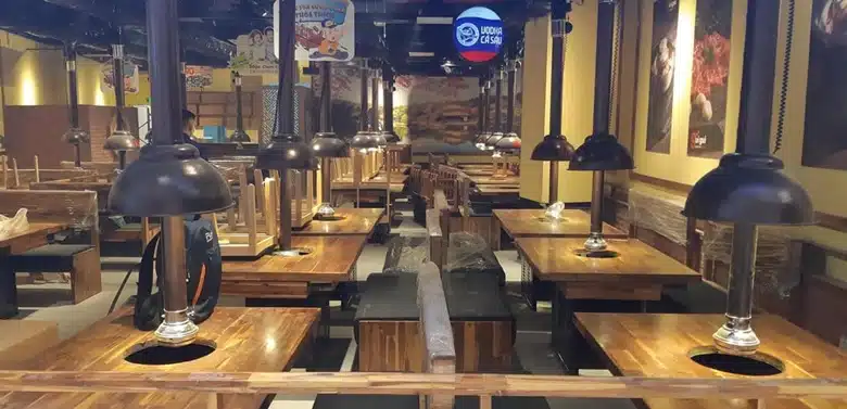 Mỗi bàn ăn đều được trang bị máy hút khói thông minh. | Nguồn: Nhà hàng Hàn Quốc Gu-i92