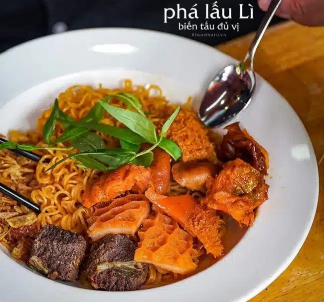 - Đa dạng cách ăn kèm hấp dẫn: Thực khách có thể thưởng thức phá lấu cùng bánh mì giòn rụm hoặc mì gói nóng hổi, tạo nên trải nghiệm ẩm thực độc đáo.